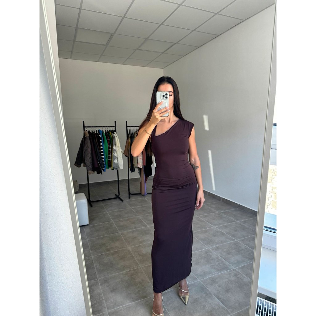 Elegantné hnedé šaty bez rukávov, ktoré zaujmú svojim výrazným výstrihom na chrbte. Elastický materiál krásne obopne postavu a zvýrazní ženské krivky. Ideálne na špeciálne príležitosti, večierky, kde chceš zažiariť jednoduchosťou a zmyselnosťou zároveň.